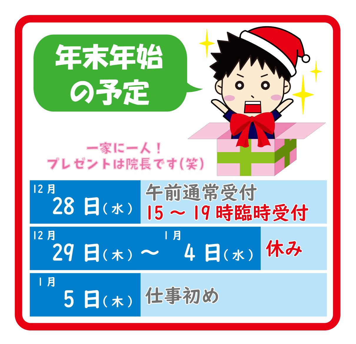 休みを利用して、整骨院内リニューアルして来年皆様をお待ちする予定です。